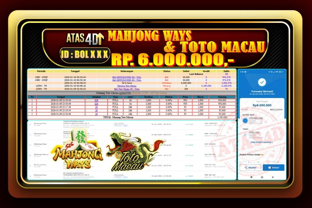 Bukti Jp ATAS4D Slot Online 10 Januari 2026 – ATAS 4D telah menjadi sebuah platform online yang selalu membayar kemenangan