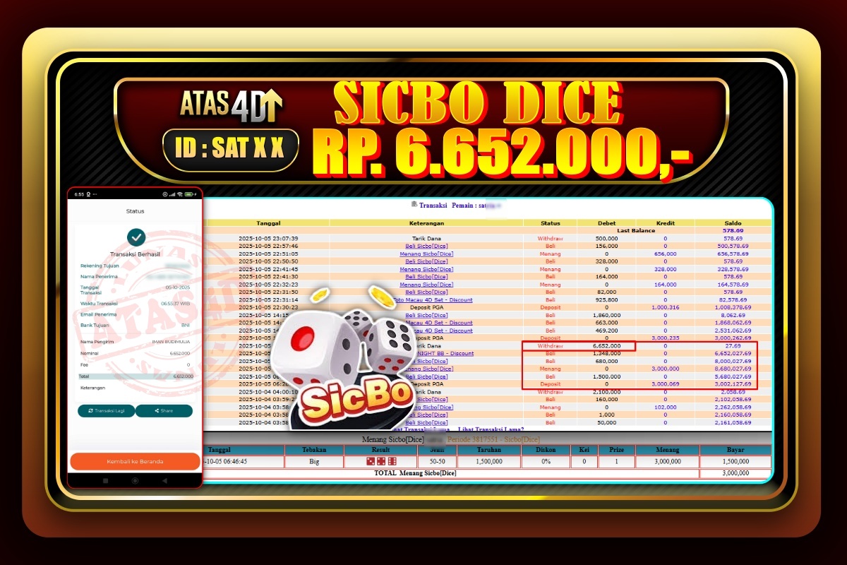Bukti Jp ATAS4D Live Casino Online 05 Oktober 2025. – ATAS 4D telah menjadi sebuah platform online yang selalu membayar kemenangan pemain