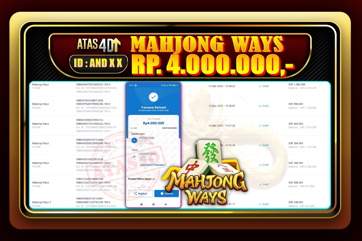 Bukti Jp ATAS4D Slot Online 12 Desember 2025. – ATAS 4D telah menjadi sebuah platform online yang selalu membayar kemenangan pemain.