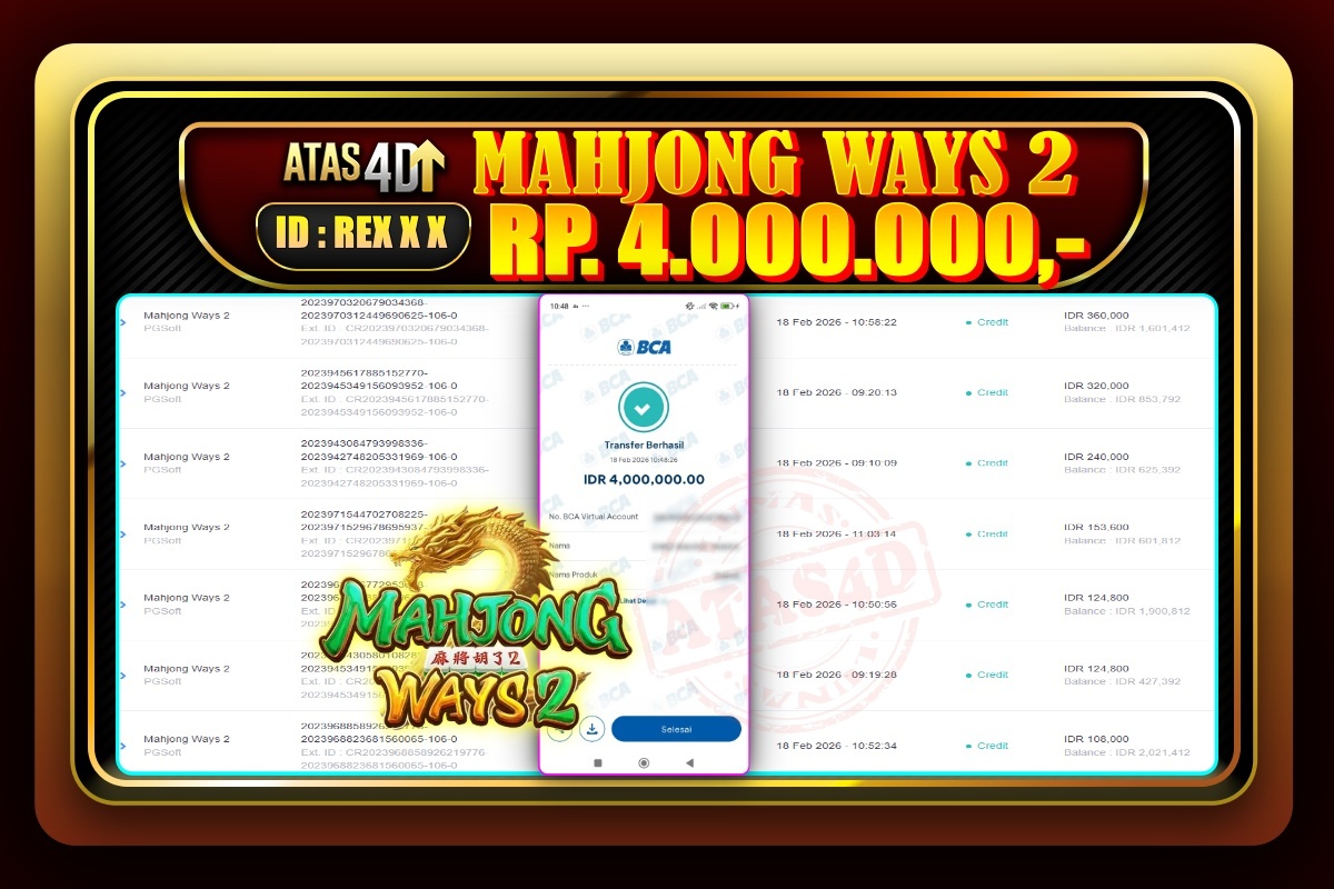 Bukti Jp ATAS4D Slot Online 18 Februari 2026  – ATAS 4D telah menjadi sebuah platform online yang selalu membayar kemenangan pemain.