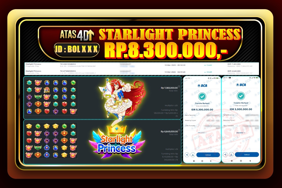 Merasakan kemenangan yang tak ada duanya kini bisa Anda alami di ATAS4D, platform judi online yang menawarkan berbagai permainan seru dan peluang jackpot besar. Setiap harinya, ribuan pemain dari seluruh Indonesia merasakan keseruan bermain dan berpotensi menjadi pemenang. Dengan ragam permainan dari togel hingga slot, ATAS4D selalu siap menghadirkan pengalaman bermain yang memukau dan mendebarkan. Mana tahu, Anda akan menjadi yang selanjutnya, meraih kemenangan spektakuler dan membawa pulang hadiah besar.