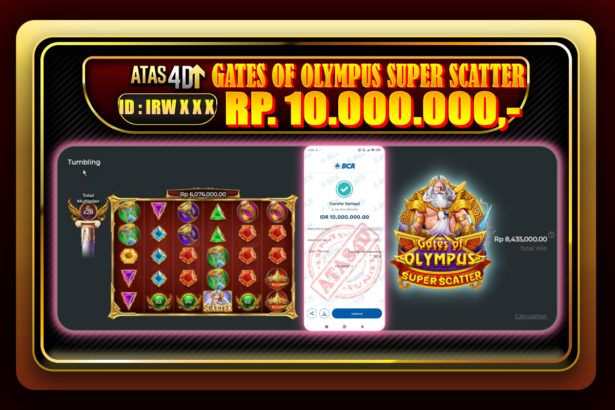 Merasakan kemenangan yang tak ada duanya kini bisa Anda alami di ATAS4D, platform judi online yang menawarkan berbagai permainan seru dan peluang jackpot besar. Setiap harinya, ribuan pemain dari seluruh Indonesia merasakan keseruan bermain dan berpotensi menjadi pemenang. Dengan ragam permainan dari togel hingga slot, ATAS4D selalu siap menghadirkan pengalaman bermain yang memukau dan mendebarkan. Mana tahu, Anda akan menjadi yang selanjutnya, meraih kemenangan spektakuler dan membawa pulang hadiah besar.