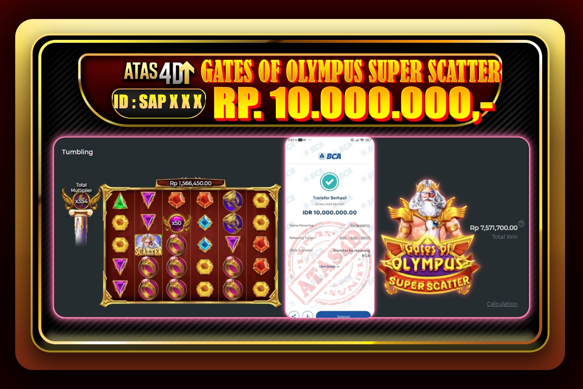 Banyak member yang berhasil meraih jackpot besar, dan bukti kemenangan mereka menjadi sumber inspirasi bagi pemain lainnya. Dengan transparansi dan sistem yang adil, ATAS4D memungkinkan pemain untuk melihat secara langsung kemenangan yang telah diraih oleh member lain, sehingga semakin menambah kepercayaan dan motivasi untuk bermain. Selain itu, komunitas ATAS4D juga sangat aktif untuk berbagi setiap tips dan trik terbaru untuk meningkatkan peluang menang. Dari strategi bermain hingga pemilihan permainan yang tepat, member sering kali saling mendukung dan memberikan informasi berharga. Dengan banyaknya bukti kemenangan yang ditampilkan, semakin banyak pemain yang tertarik untuk mencoba peruntungannya dan bergabung dengan keseruan bermain di ATAS 4D.