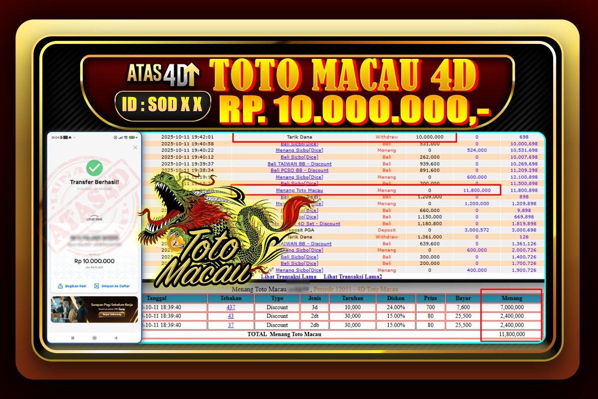 Bukti Jp ATAS4D Togel Online 11 Oktober 2025. – ATAS 4D telah menjadi sebuah platform online yang selalu membayar kemenangan pemain