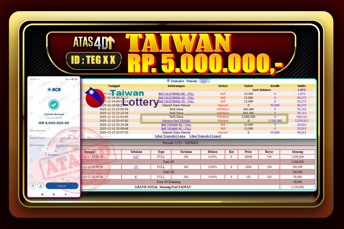 Bukti Jp ATAS4D Togel Online 13 Desember 2025. – ATAS 4D telah menjadi sebuah platform online yang selalu membayar kemenangan pemain