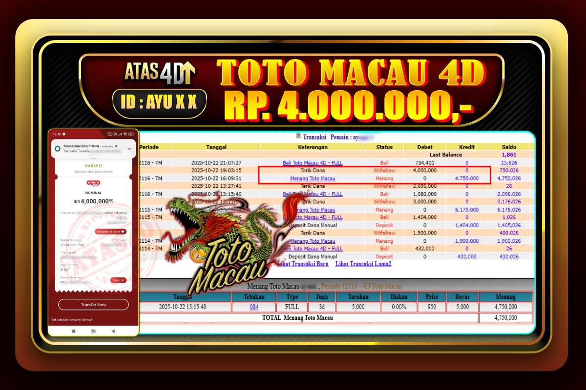 Bukti Jp ATAS4D Togel Online 22 Oktober 2025. – ATAS 4D telah menjadi sebuah platform online yang selalu membayar kemenangan pemain
