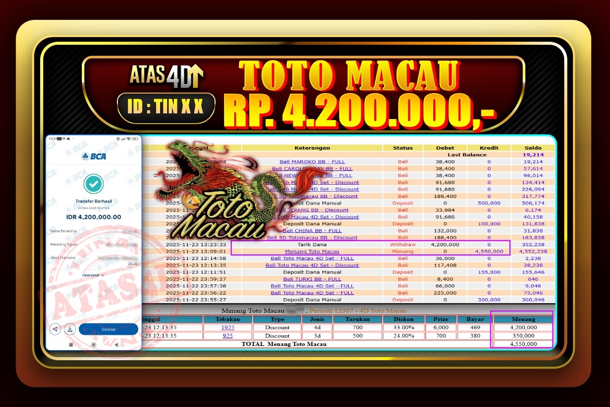 Bukti Jp ATAS4D Togel Online 23 November 2025. – ATAS 4D telah menjadi sebuah platform online yang selalu membayar kemenangan pemain
