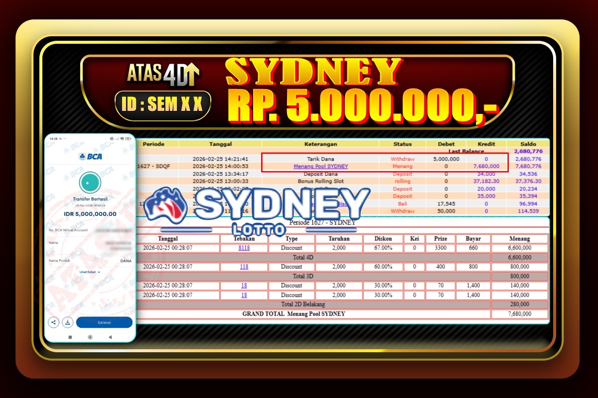 Bukti Jp ATAS4D Togel Online 25 Februari 2026  – ATAS 4D telah menjadi sebuah platform online yang selalu membayar kemenangan pemain.